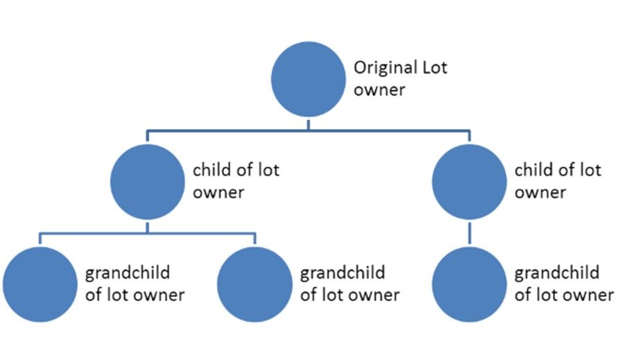 Start with the original lot owner. If the lot owner(s) are deceased, move to the next bloodline, children.